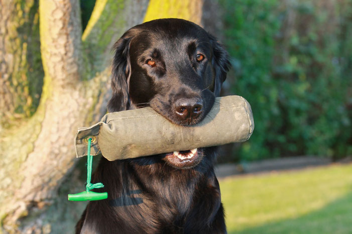 Apportieren ist eine wunderbare Möglichkeit, den Hund körperlich und geistig auszulasten. Im Rahmen des Trainings werden Impulskontrolle und Frustrationstoleranz erhöht und die Zusammenarbeit von Mensch und Hund intensiviert.
