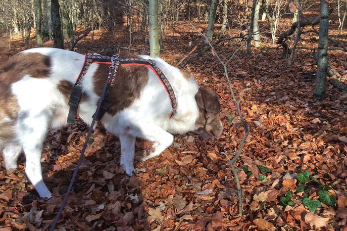 Da der Hund sowohl bei der jagdlichen Arbeit, als auch beim Dummytraining durchaus Jagdtrieb zeigen, aber nicht unkontrolliert ausleben soll, war der nächste logische Schritt die Entwicklung eines Jagdkontroll-Trainings. So kam es dazu, dass ich neben der "normalen" Verhaltensberatung auch Workshops zu den Themen Nasenarbeit, Apportieren und Jagdkontrolle anbiete.